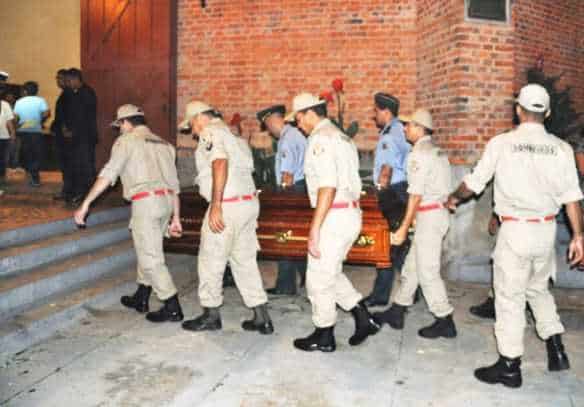 Depois, foi transportado em cima de um caminhão do Corpo de Bombeiros, com cortejo e acompanhado de uma carreata. A população presente nas ruas aplaudiu a passagem do caixão.