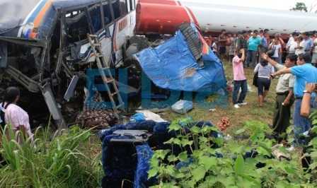Ônibus da empresa La Nobreza colidiu na madrugada contra um carro pipa nas proximidades de San German, cidades distante cerca de 4 horas de Santa Cruz.
