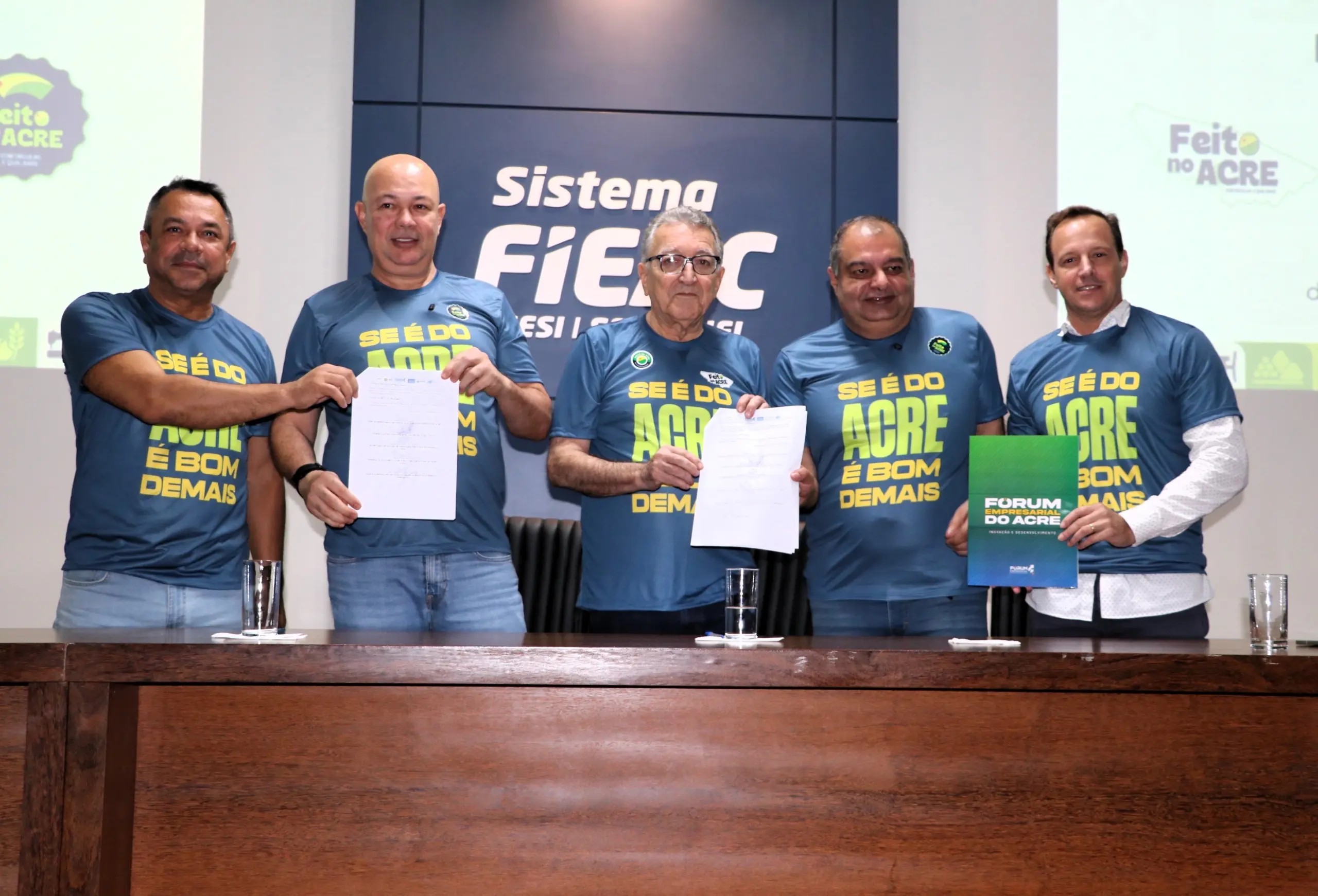 O Fórum Empresarial de Inovação e Desenvolvimento do Acre, a Federação das Indústrias do Acre (FIEAC), a Federação da Agricultura e Pecuária do Estado do Acre (FAEAC), o Governo do Estado por meio da Secretaria de Indústria, Ciência e Tecnologia (SEICT) e o Sebrae/AC realizaram nesta sexta-feira, 12, o lançamento oficial da campanha “Feito no Acre – Com orgulho e qualidade”, um movimento que marca uma nova etapa na valorização da produção acreana.