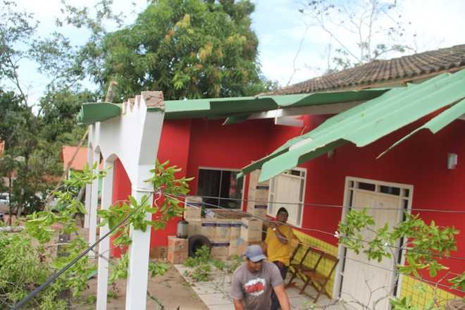Pousada teve parte de seu telhado afetado com a queda de uma árvore durante o vendaval – Foto: Alexandre Lima